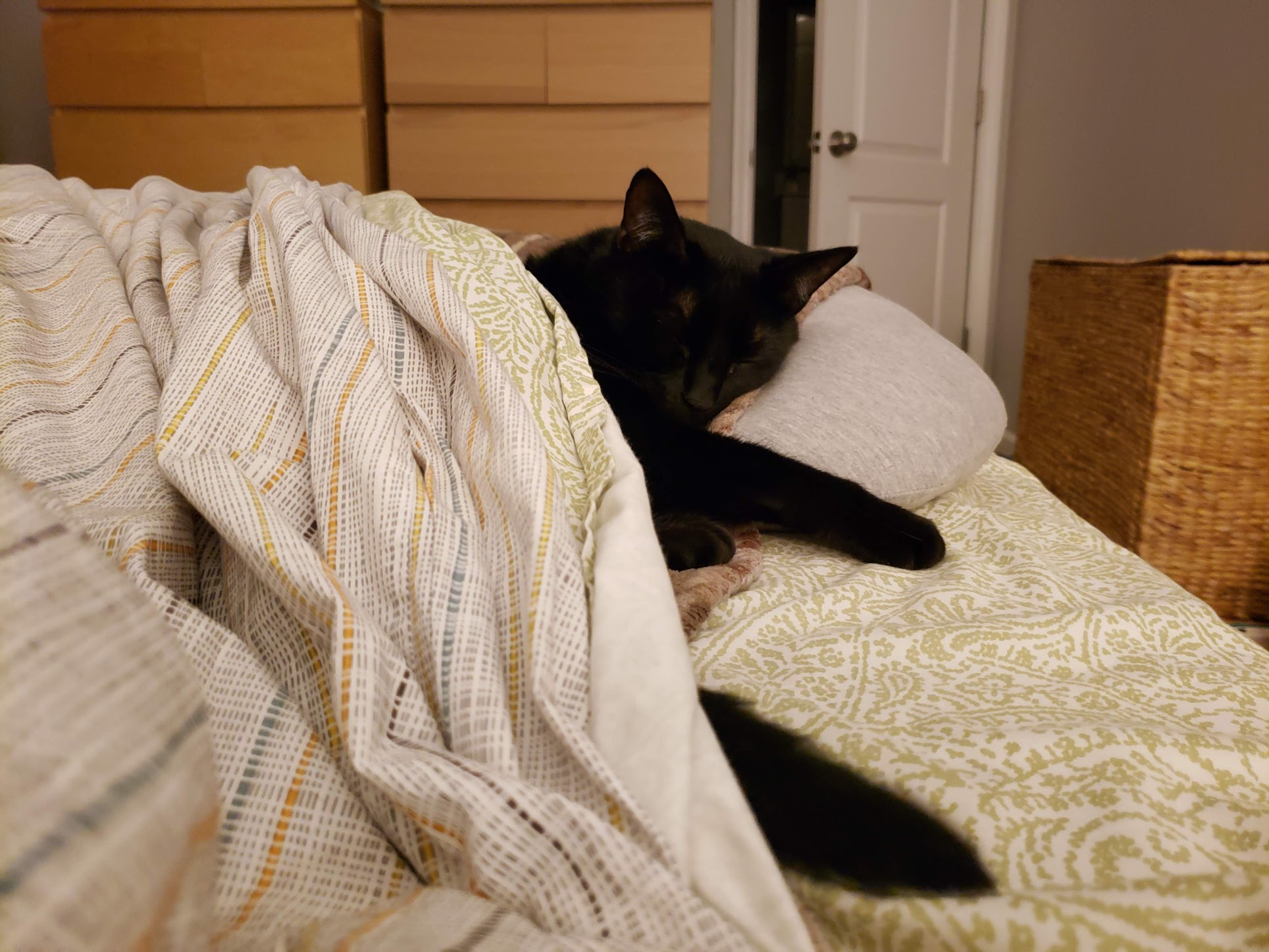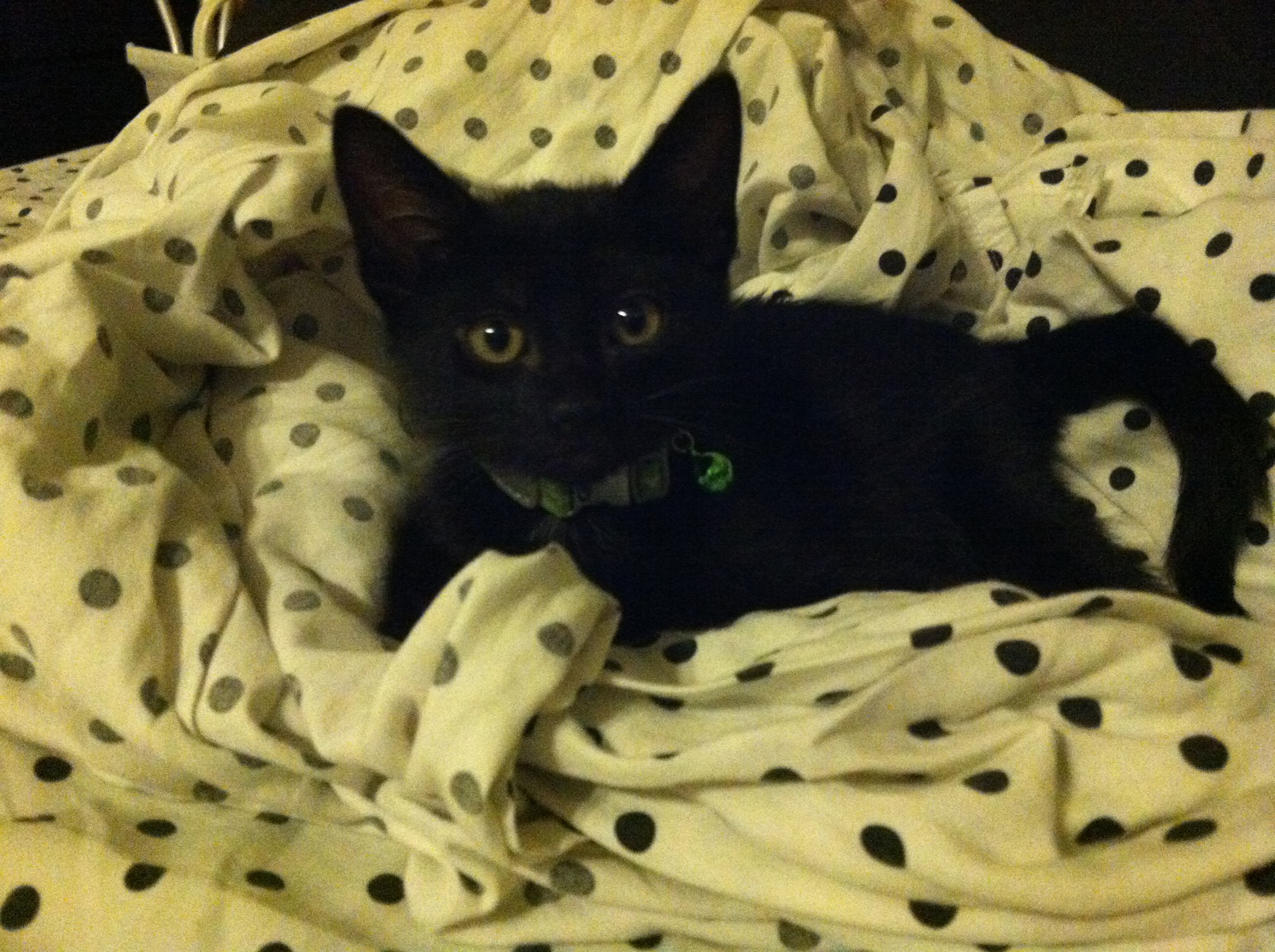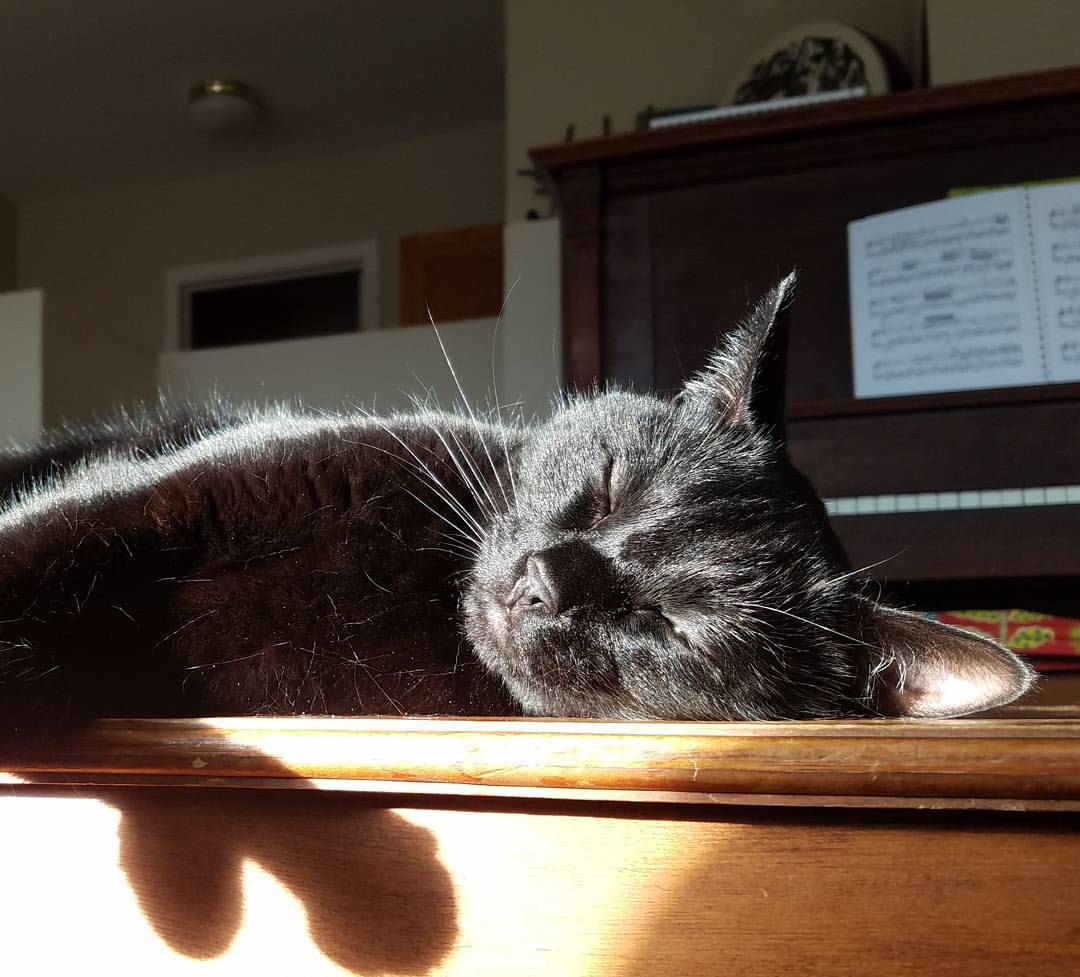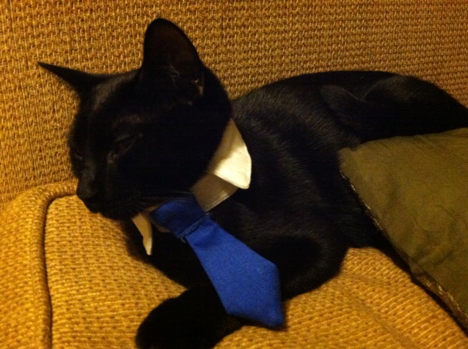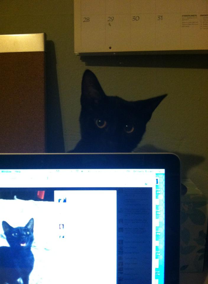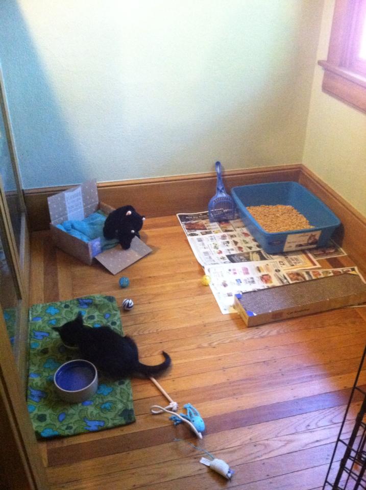 Zero was born sometime around Saint Patrick's Day 2013. I was working as a pet sitter and dog walker at the time, and one of my clients was fostering some adorable black kittens. She told me they would be at the SPCA that weekend, and my boyfriend (now husband) agreed to go look with me. The volunteer who helped us was new and didn't know you were supposed to only allow people to meet up to 3 kittens or something, so we spent a long time meeting different kittens haha. Zero was the perfect balance of playful and affectionate when we interacted with him, and we happily took him home. Zero's name at the shelter was Gus. We didn't immediately have a new name for him, but over the next couple of days we settled on Zero. His name is not any one specific reference, but has a few associations that made us like it: the Smashing Pumpkins song, the skateboard brand, Jack Skellington's ghost dog companion, my WoW hunter character's beloved ghost snow leopard pet, and of course the hex code for black, #000000. |